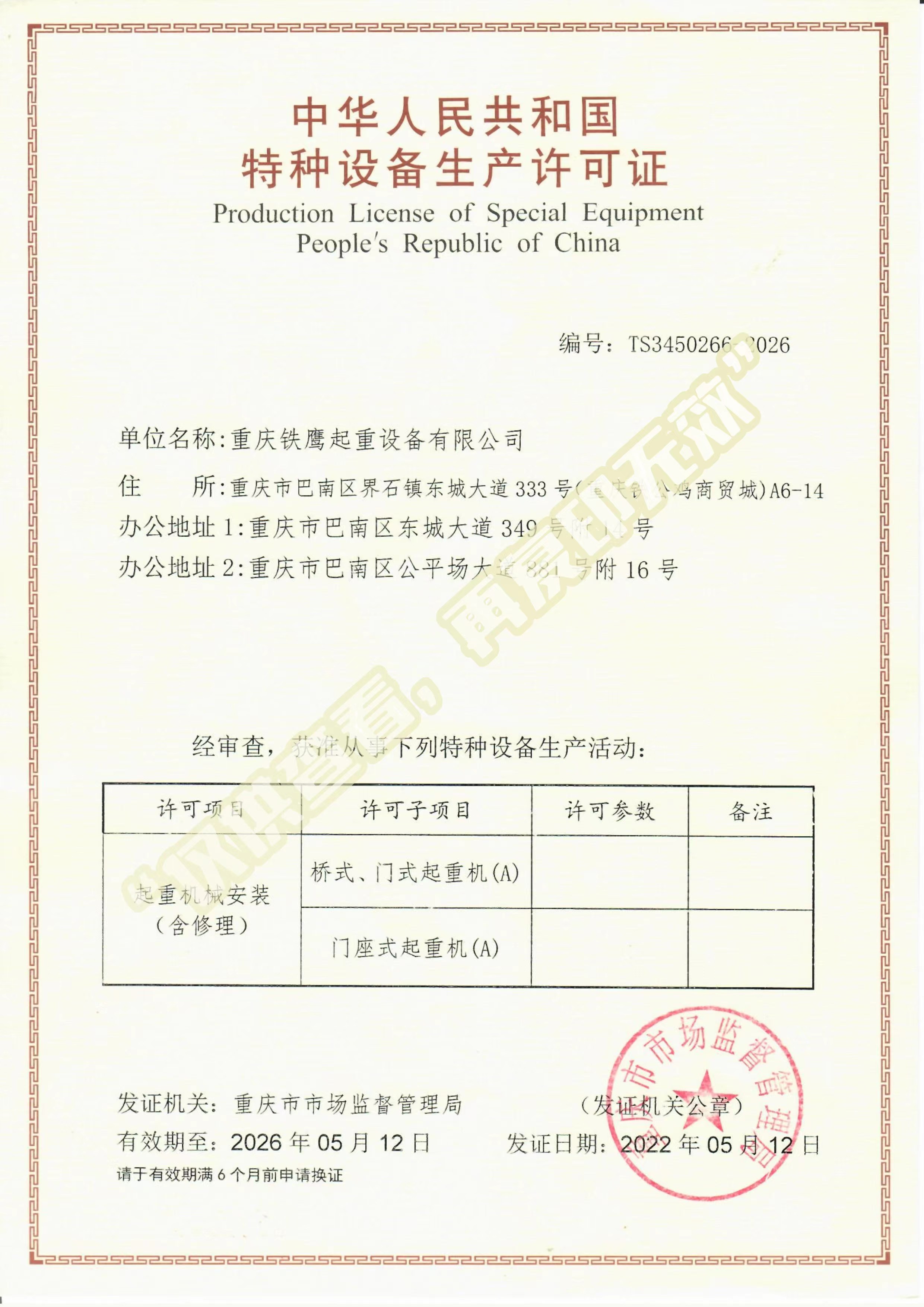 重慶鐵鷹起重設(shè)備有限公司成立多年,是中國重型機械工業(yè)協(xié)會會員單位,是國內(nèi)外信譽卓著、規(guī)模較大的起重機專業(yè)制造廠家之一。主要從事雙梁起重機、門式起重機、單梁起重機、抓斗、軟起動錐形電機、電動葫蘆等系列起重設(shè)備的制造、銷售和安裝。 公司在借鑒、學(xué)習(xí)國內(nèi)外先進管理方法、經(jīng)營理念的基礎(chǔ)上,建立了“以人為本”的現(xiàn)代化科學(xué)規(guī)范的管理機制...